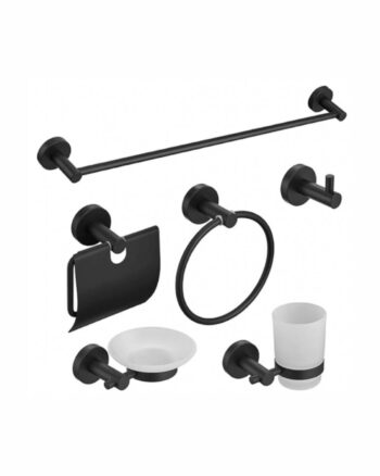 Set de accesorios de baño base redonda negro mate